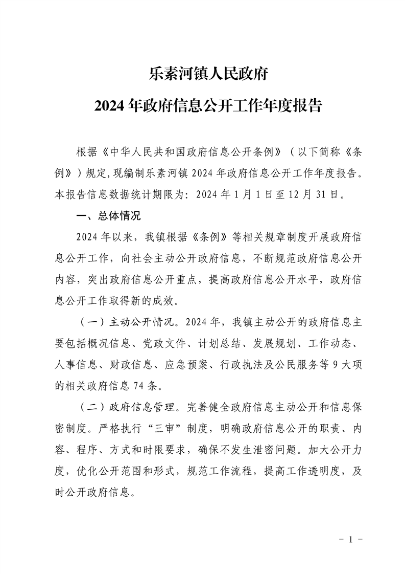 樂素河鎮(zhèn)人民政府2024年政府信息公開工作年度報告 |