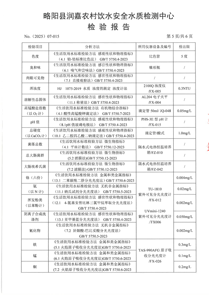 水質(zhì)檢測(cè)報(bào)告7月-5城區(qū)管網(wǎng)末梢-棕樹(shù)灣