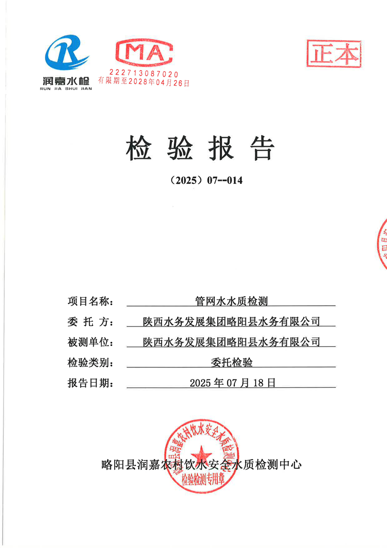 水質(zhì)檢測(cè)報(bào)告7月-4城區(qū)管網(wǎng)-司法局