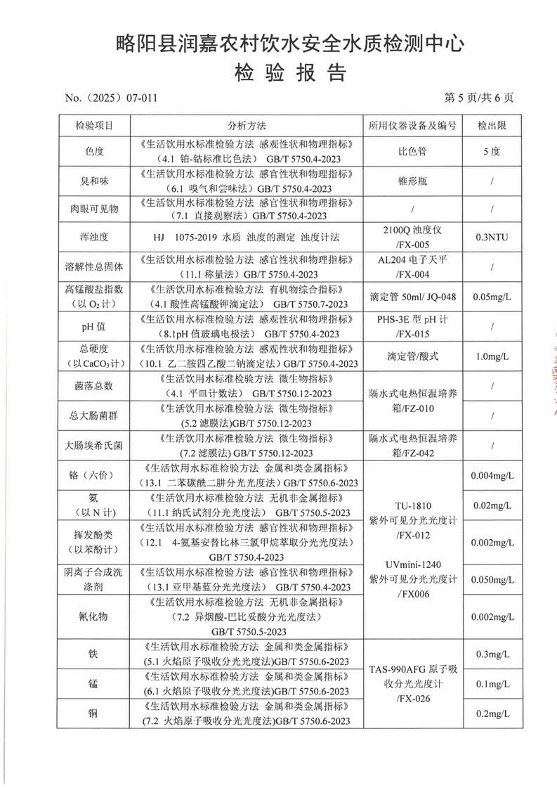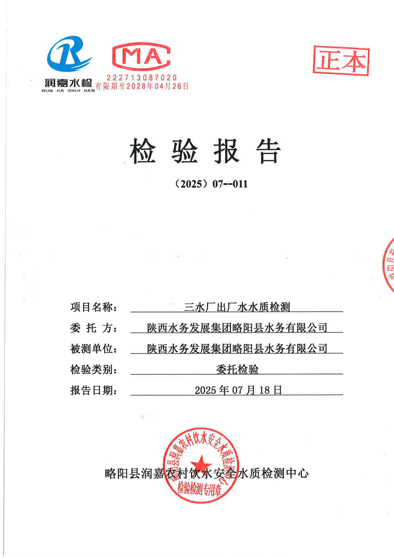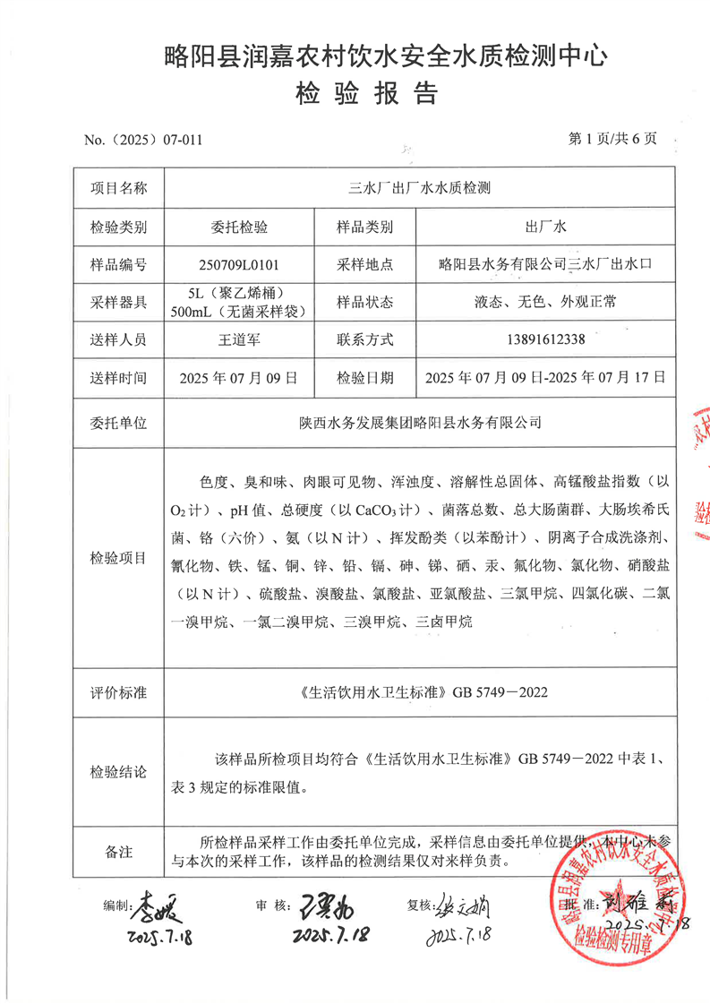 水質(zhì)檢測(cè)報(bào)告7月-1出廠水