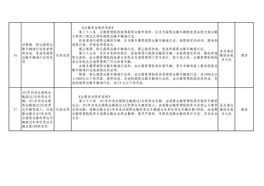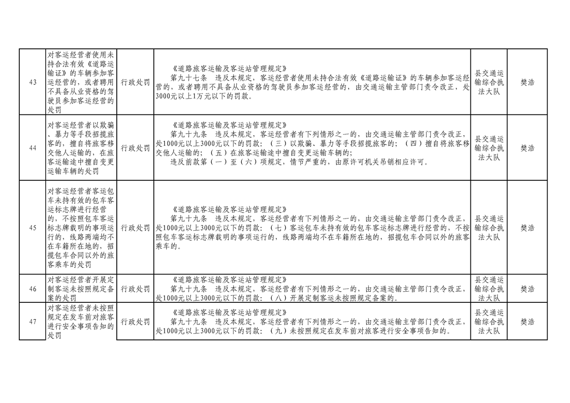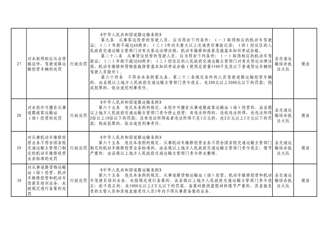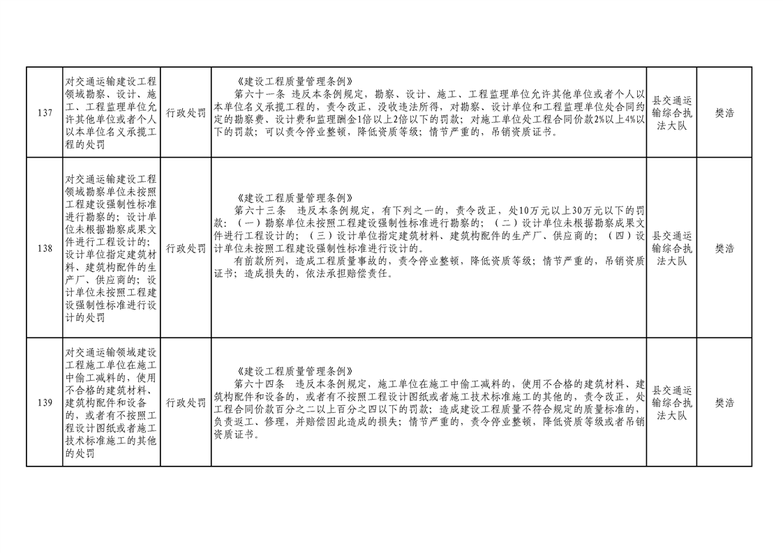 交通運輸局行政執(zhí)法事項清單 |