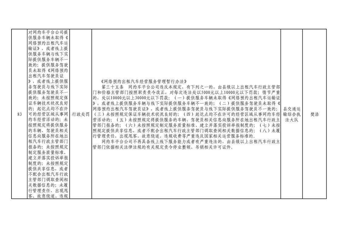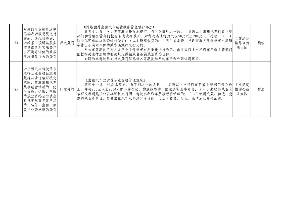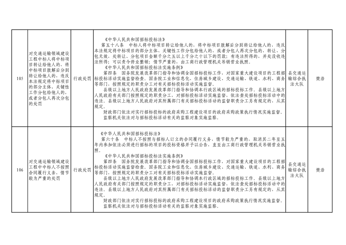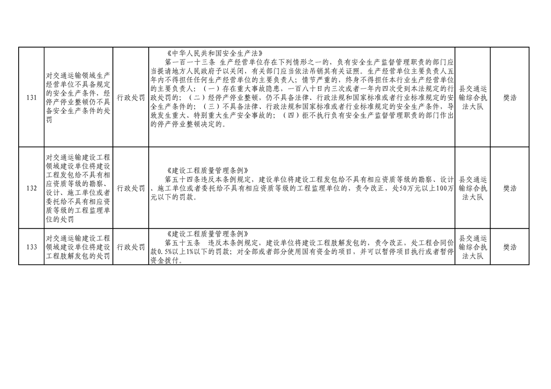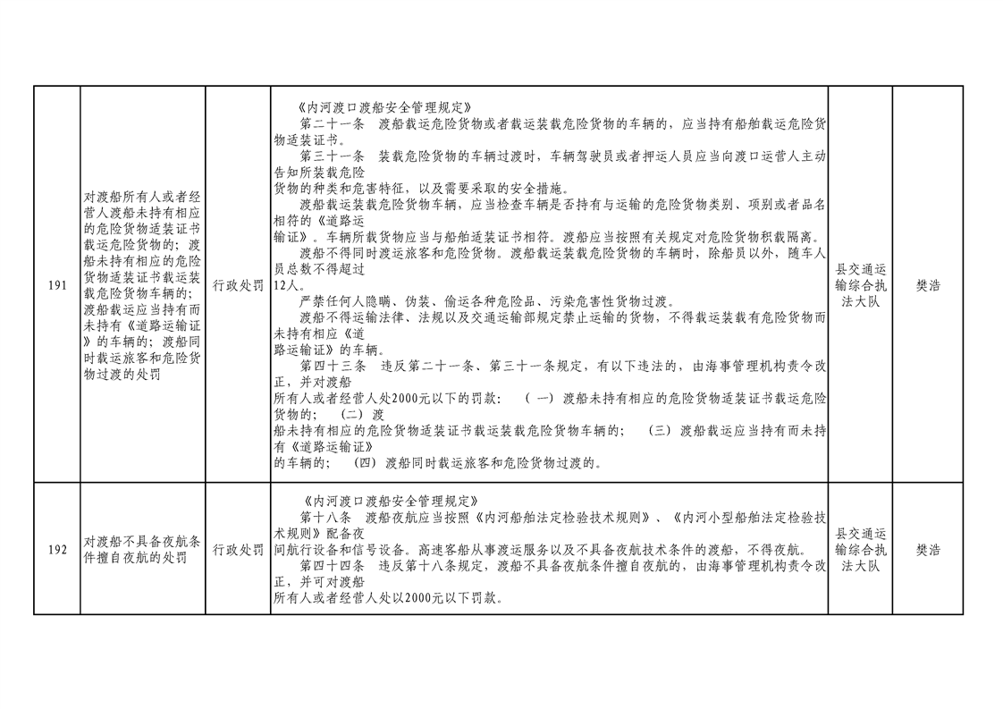 交通運輸局行政執(zhí)法事項清單 |