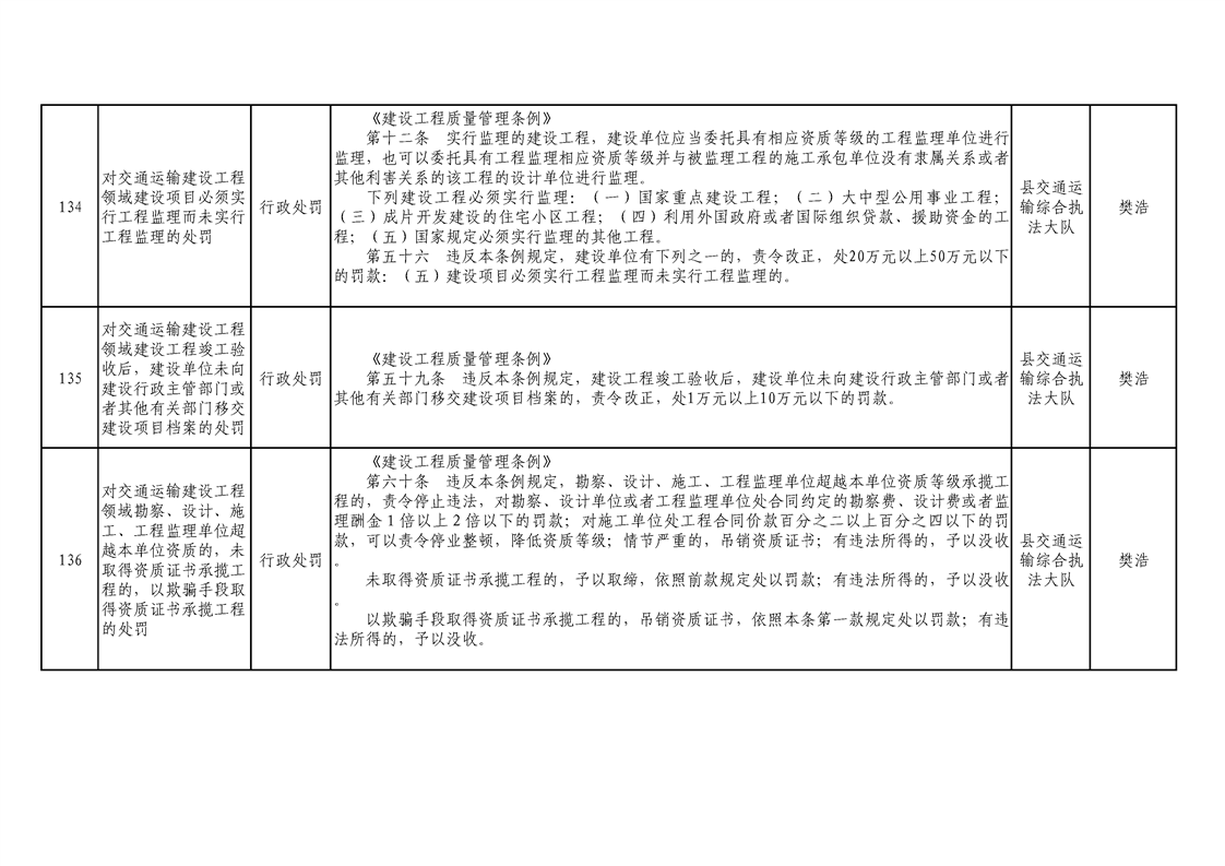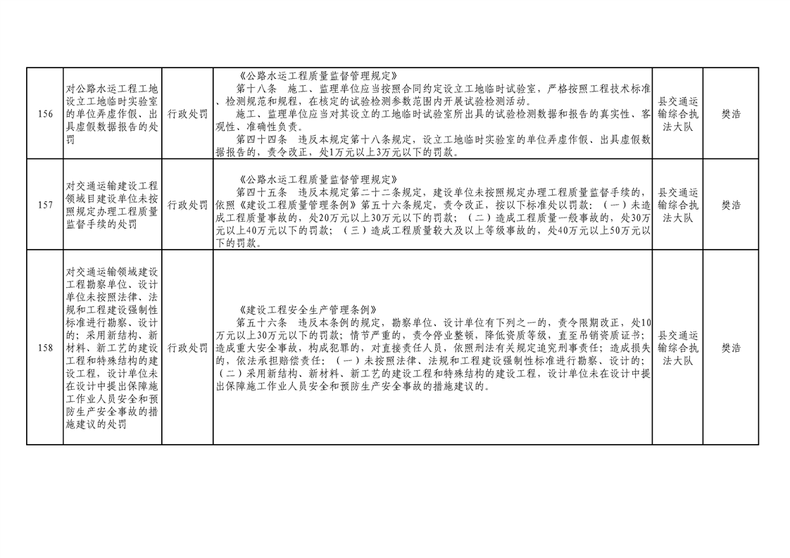 交通運輸局行政執(zhí)法事項清單
