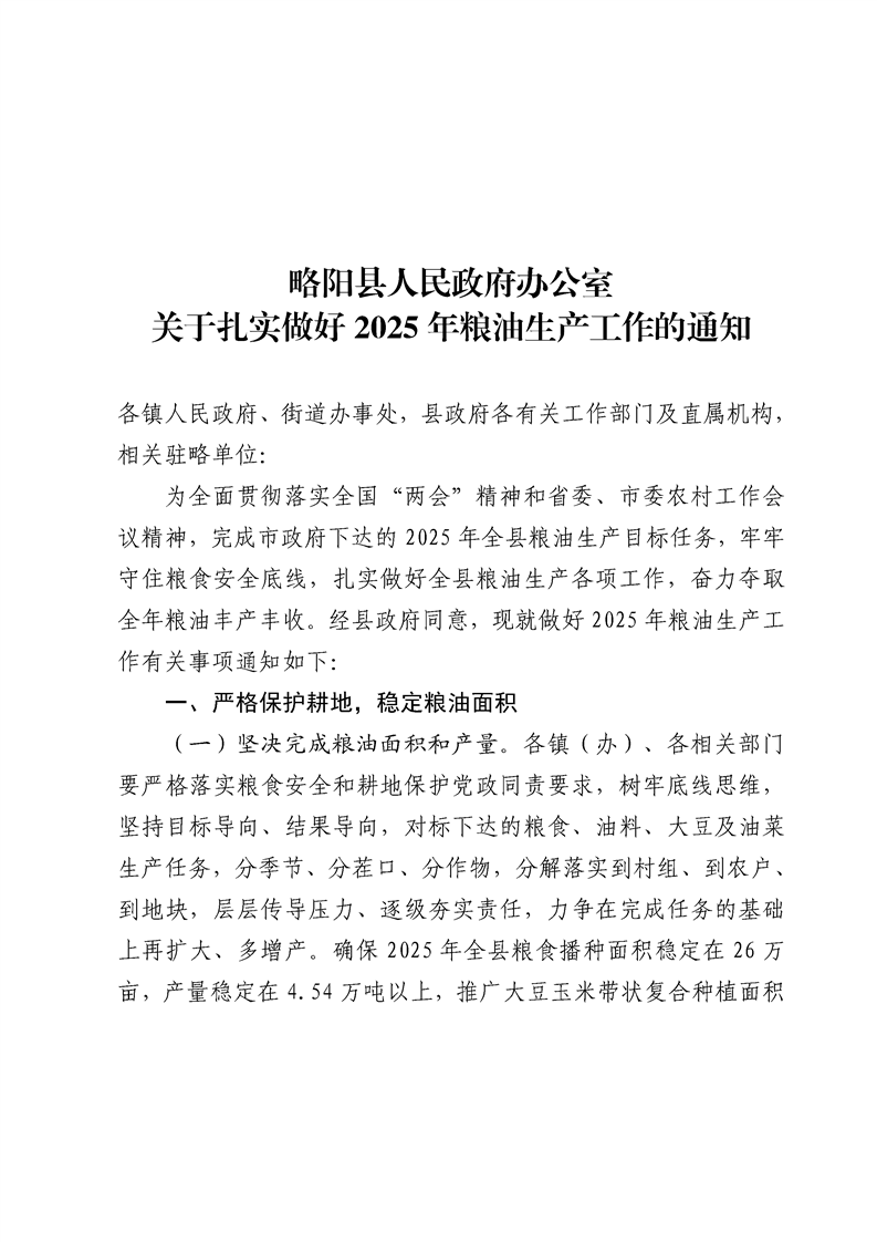 略陽縣人民政府辦公室關(guān)于扎實(shí)做好2025年糧油生產(chǎn)工作的通知